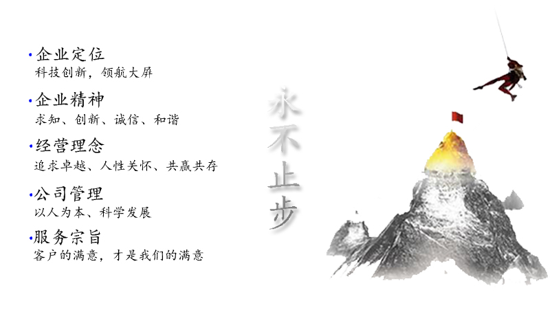 公司以“质量是生命力、价格是竞争力”为理念;本着“诚信务实,一言九鼎“的企业精神;弘扬‘以人为本’的企业文化,重视凝聚集体力量,专注产品的质量、市场推广及售后服务,务求满足客户的需求。